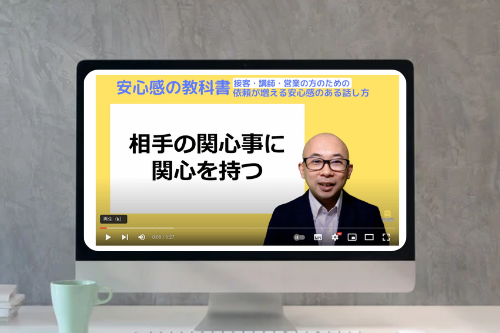 お客様との信頼関係を築くには、まずは相手に安心してもらうことが必要です。安心感のある話し方・聴き方ができるようになると、相手があなたを信頼してくれるようになり、「あなたに任せたい」と言ってもらえるようになります。